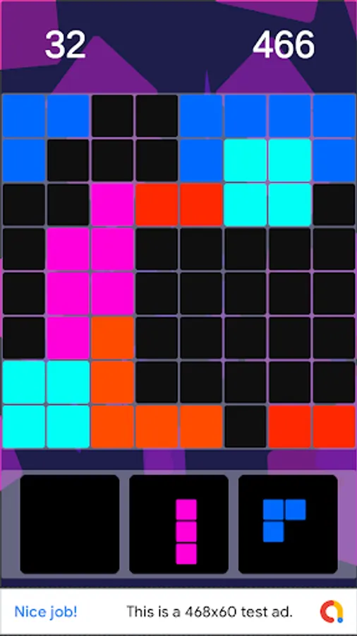 Place the blocks into board. Once you fill in a vertical or horizontal line, it will disappear, freeing up space for new blocks.