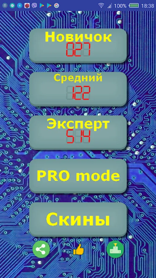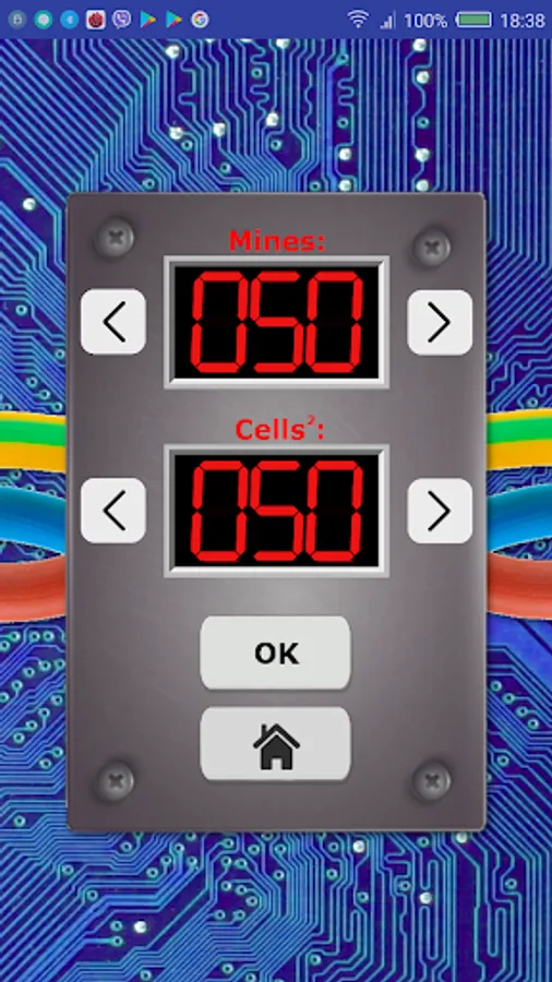 In PRO mode, you can select the number of mines and cells of the playing field.
