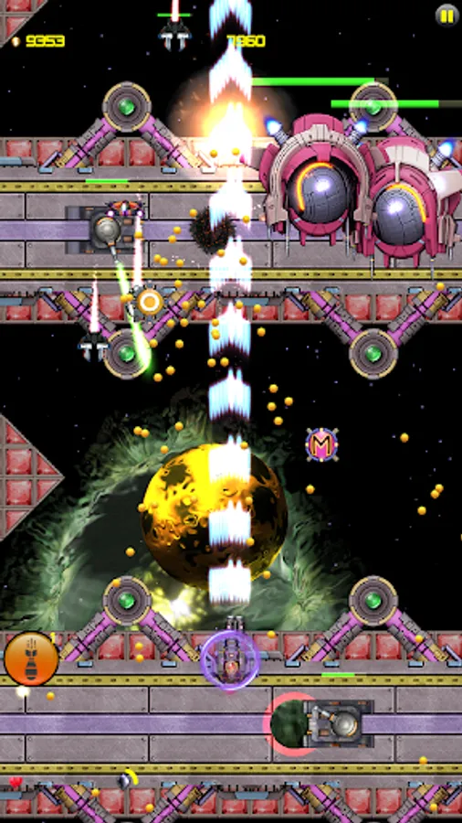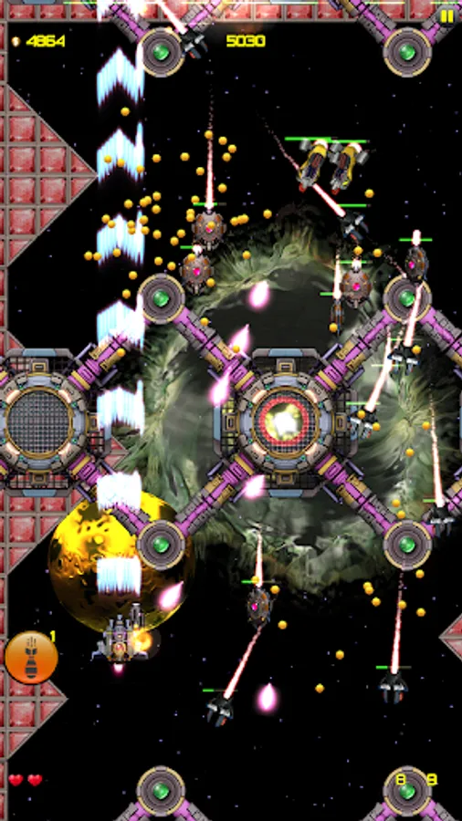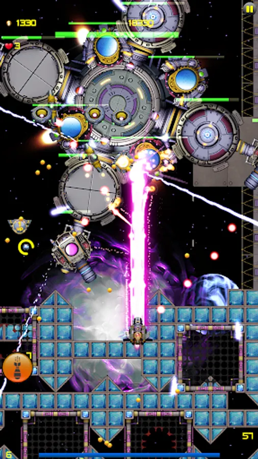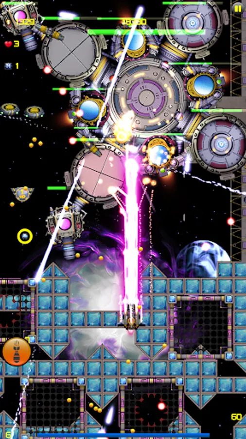 - Destroy all enemies on your way and collect coins and power-ups for your spaceship.
