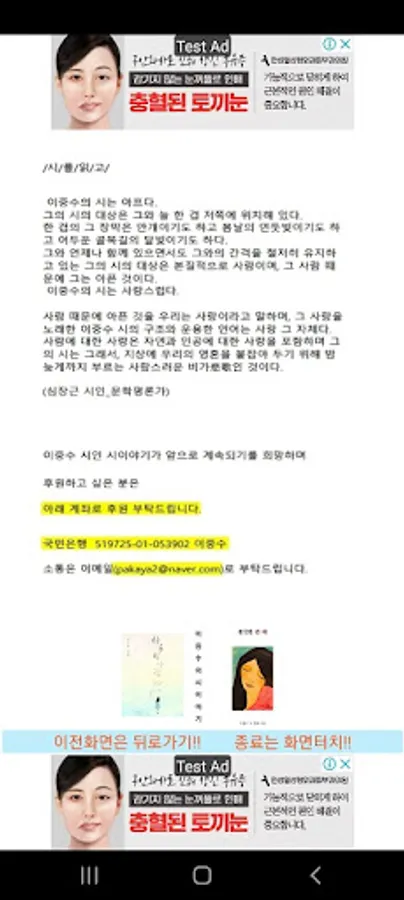 Poet Lee Jung-soo has created and distributed an app to communicate more with many readers, so please download and enjoy it.