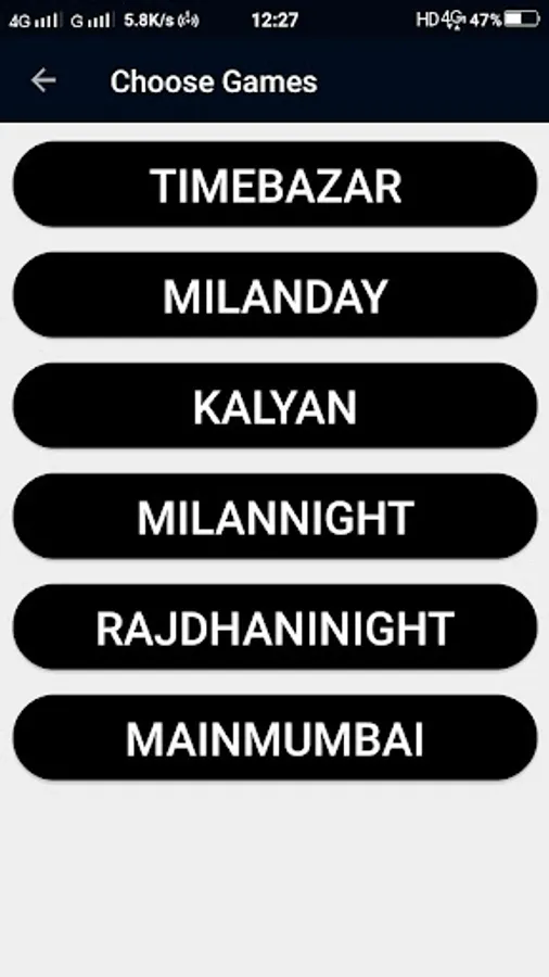TIMEBAZAR, MILAN DAY, KALYAN, MILAN NIGHT, RAJDHANI NIGHT AND MAIN MUMBAI.