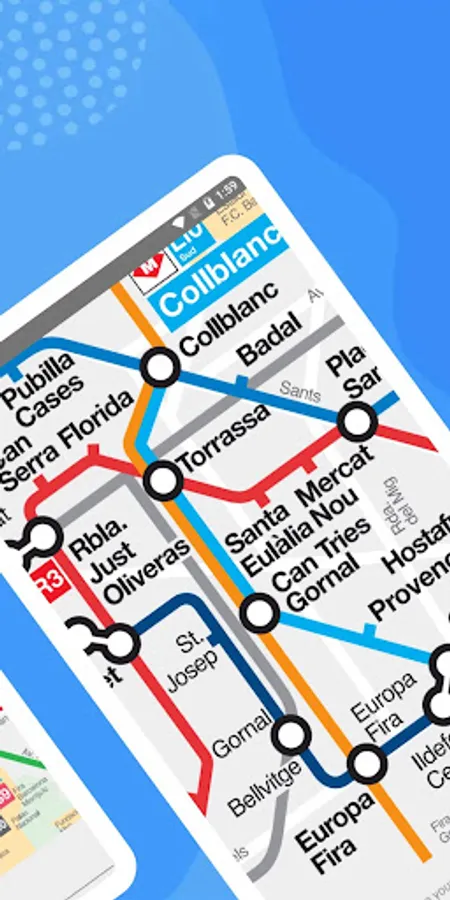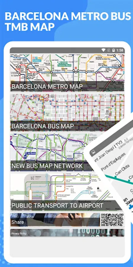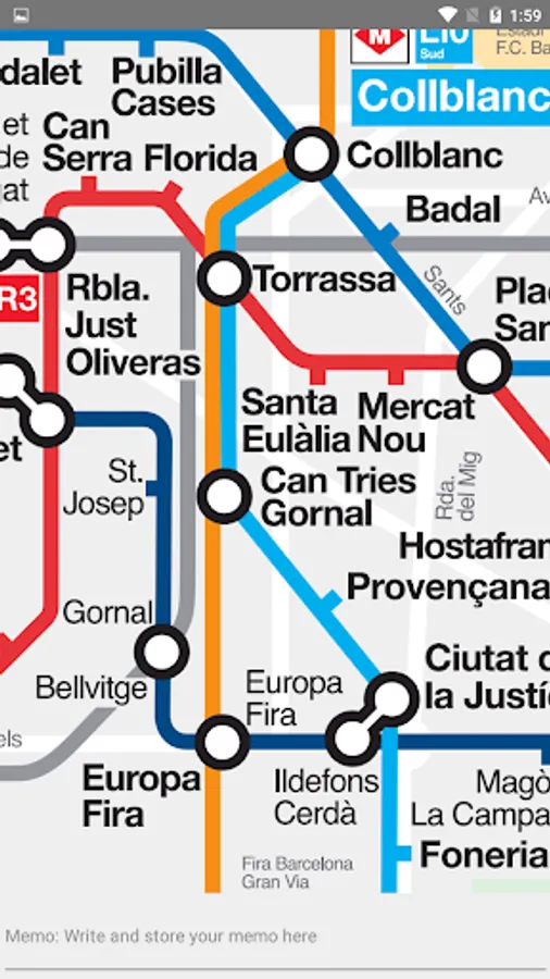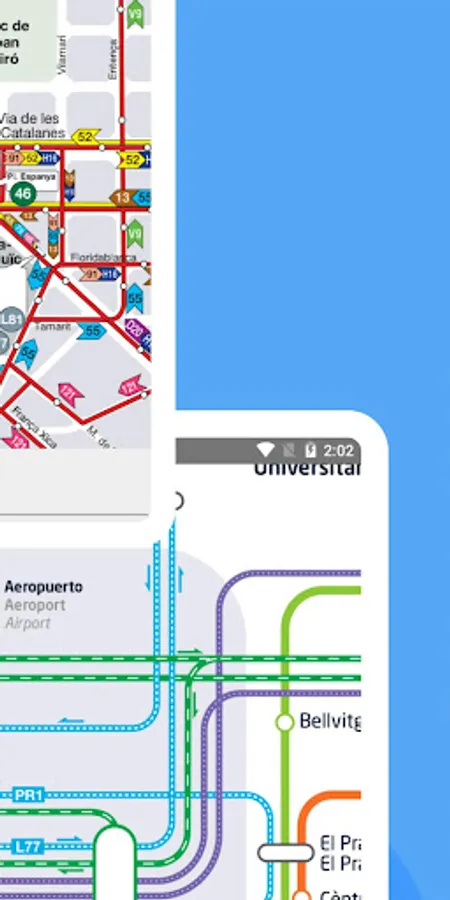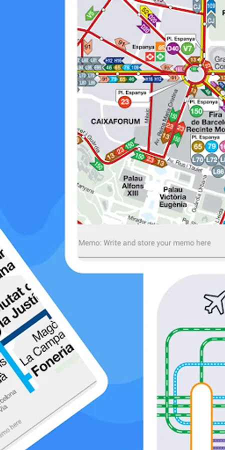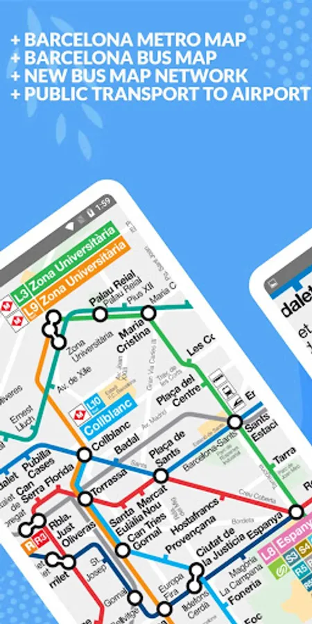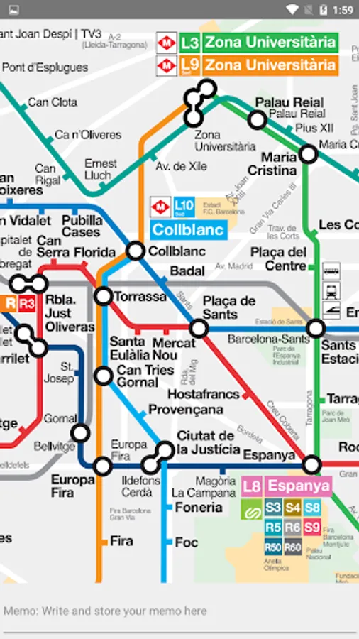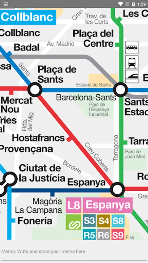 All bus lines and stops, and links to the metro, FGC railway, Rodalies de Catalunya main-line railway and TRAM.