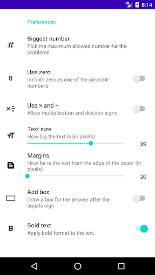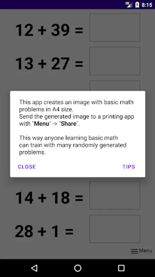 This way anyone learning basic math can train with many randomly generated problems, with no need to look at a screen all the time, but just the pen and the printed paper.