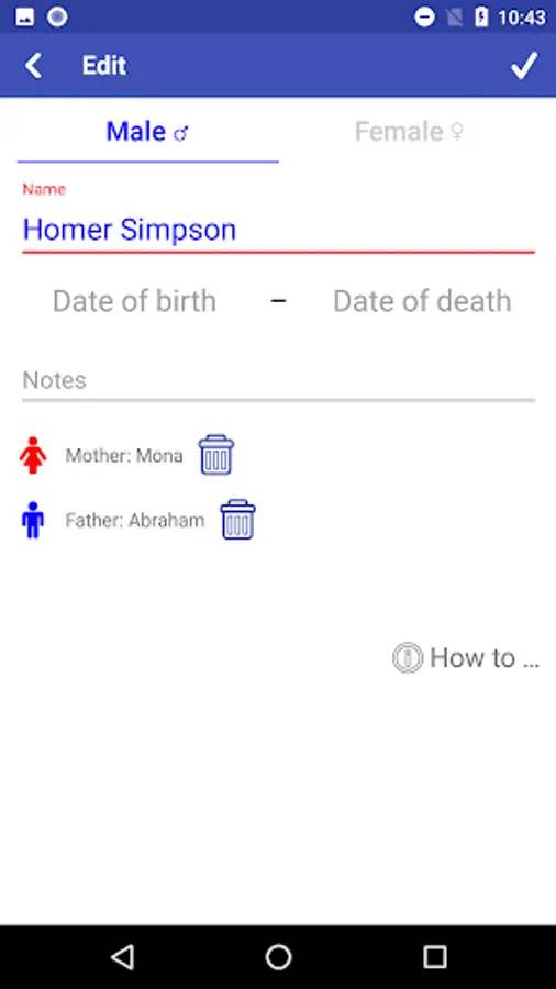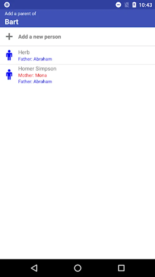Tap on a person's name to edit, delete, move, add a parent or add a child of this person.