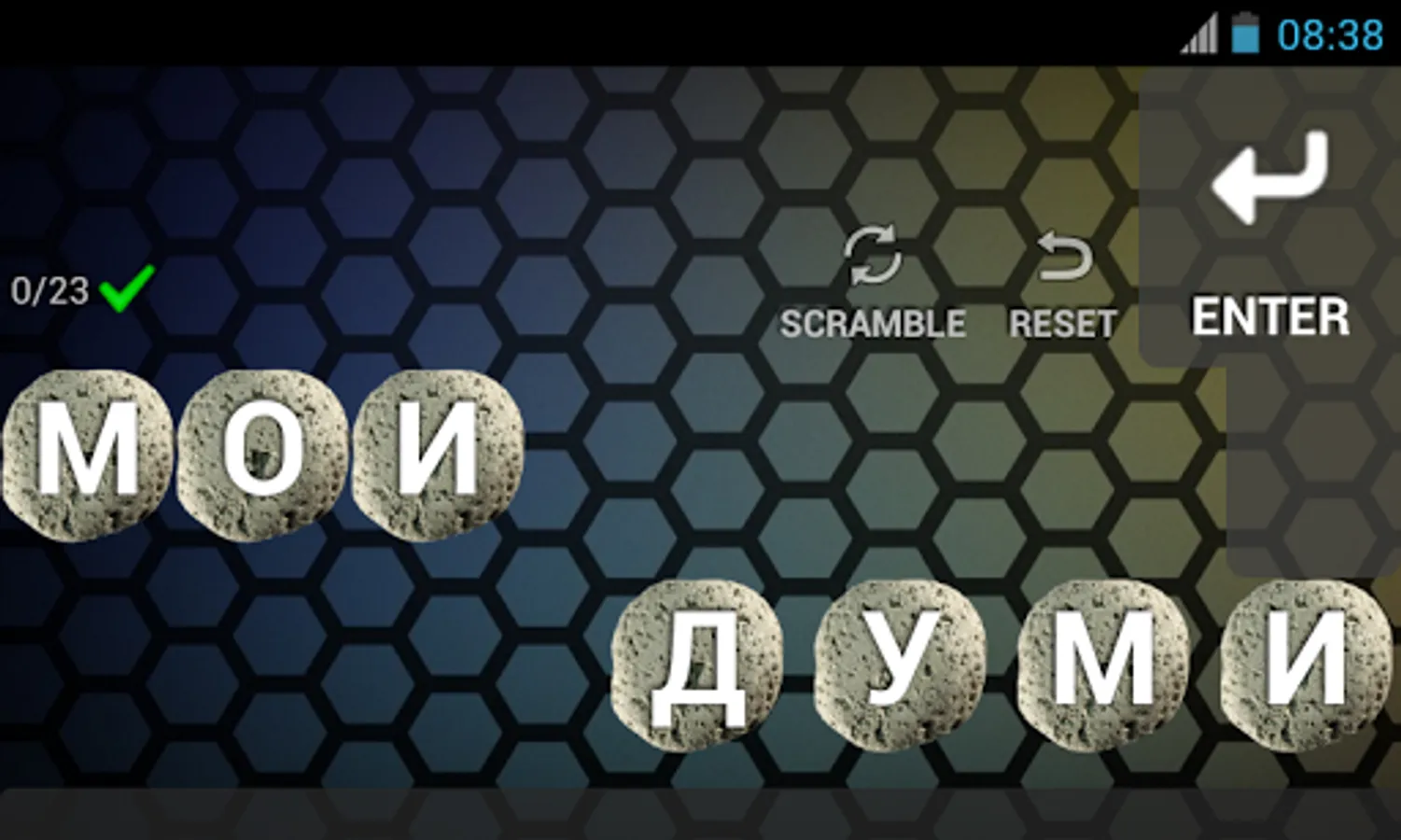 На екрана има бутон "Разбъркай", който размесва буквите (много помага за намиране на още думи).