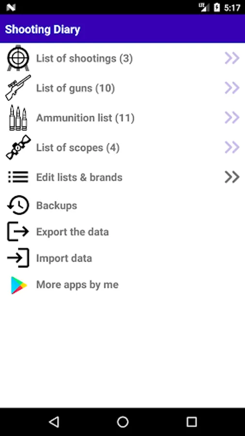 This is a very simple app that provides the ability to write notes or log the shooting data. Book keeping is very important for anyone who is into shooting, and even much so for people who reload their ammunition. So this app give you the easy 1 time setup of things like: