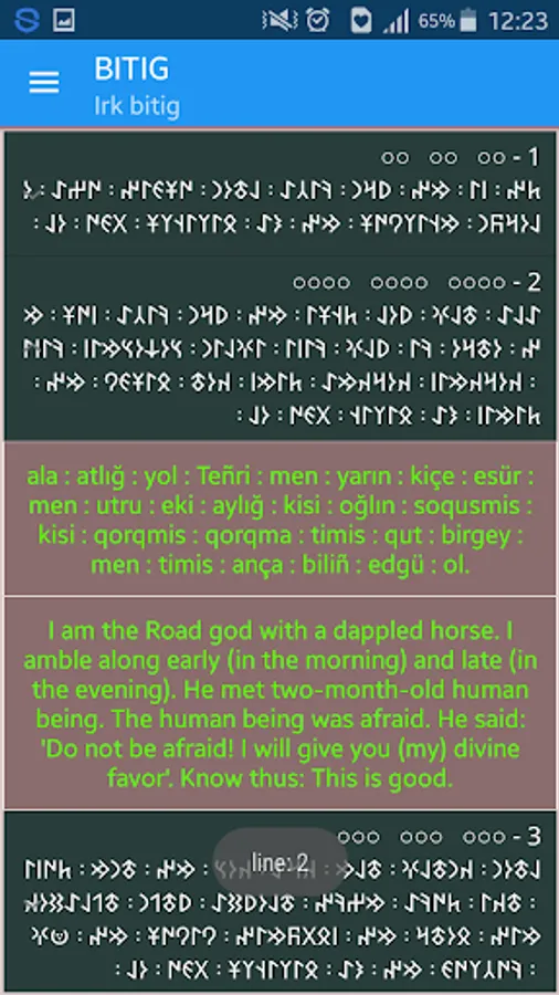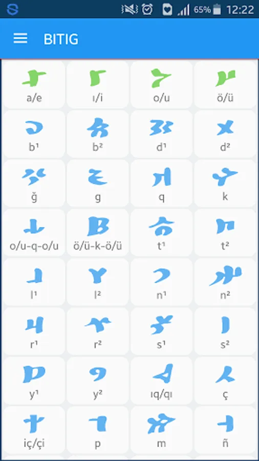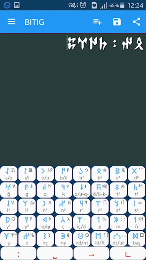 Turkic Bitig app is just an android appication for promoting to learning TURKIC BITIG (the Orkhon alphabet or Old Turkic script, the Göktürk script, or the Orkhon-Yenisey script, known as Yenisei or Siberian runes, runic alphabet) and writing with it, save it as text and photo...