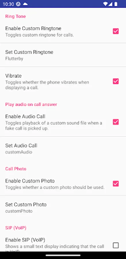 If you wish to have the widget generate a call with a custom caller number/name/delay, use the Save Field button in the main application.