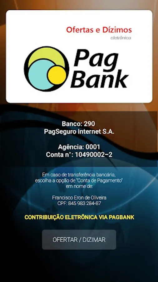 💛 Donate or contribute to the church directly through the app with a credit, debit or boleto card.