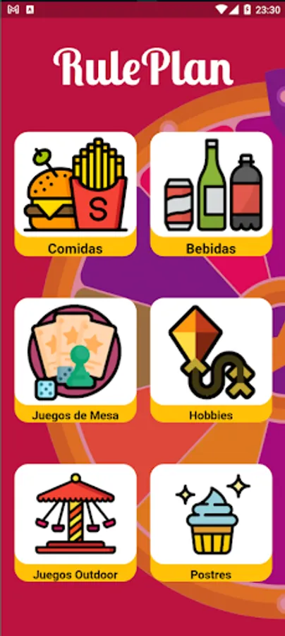 RulePlan's roulette contains a wide range of plans popular with friends and family. With categories including food, drinks, board games, hobbies, outdoor games, desserts, movies, video games and many more, there's always something exciting to do.