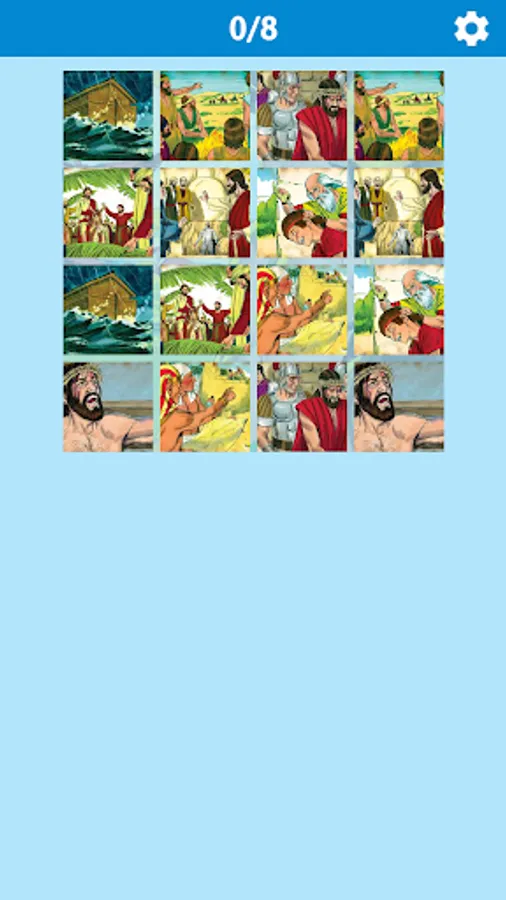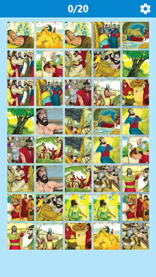 The objective of the game is very simple, memorize and find the matching pairs images. Finding all pairs of the stage, as a reward will be unlocked images with Biblical events in chronological order, which can be viewed at any time through the "My Collection" option from the main menu. Play as you want, without restriction of time or number of attempts.