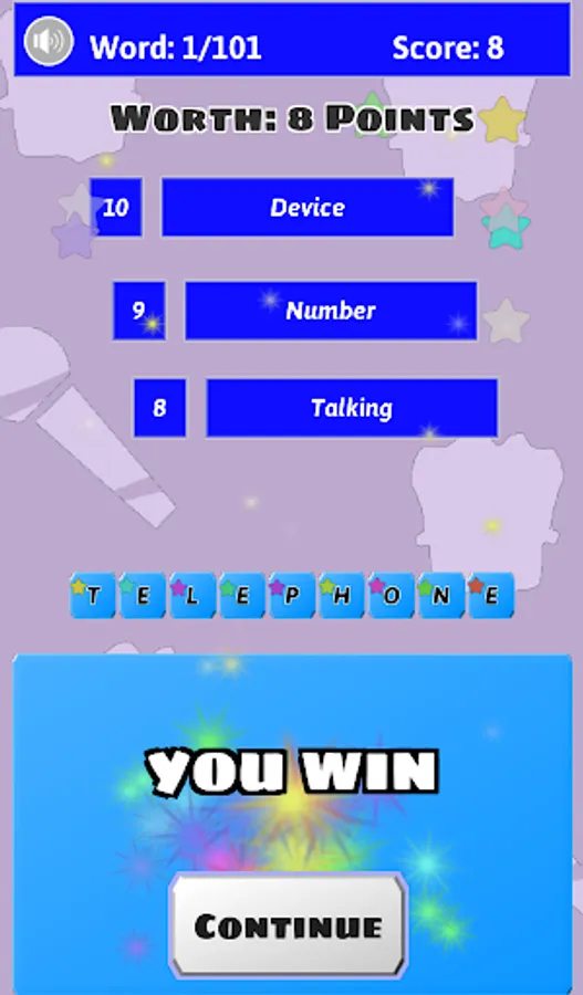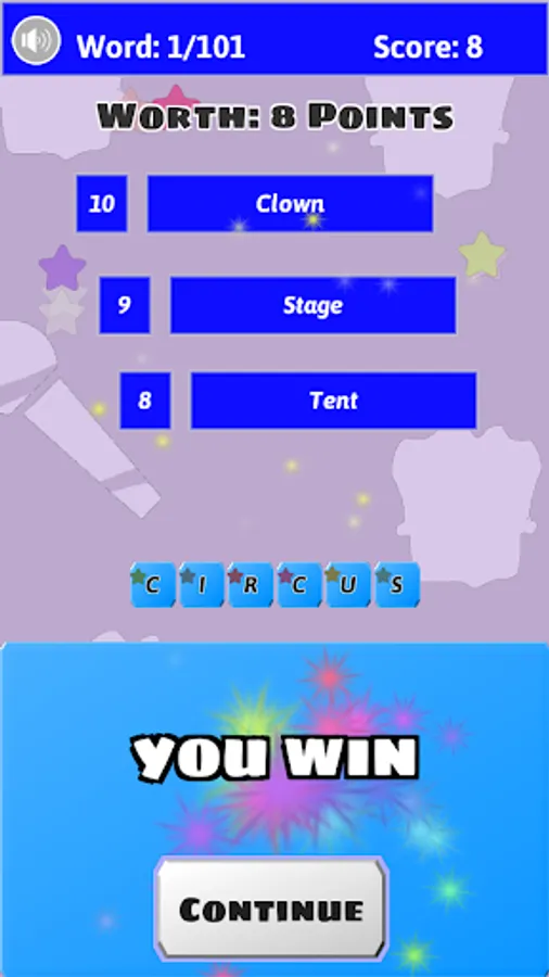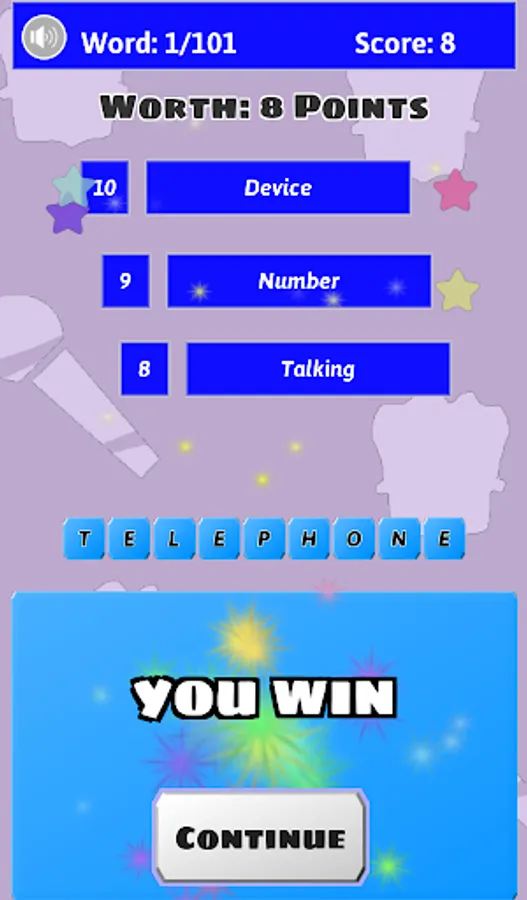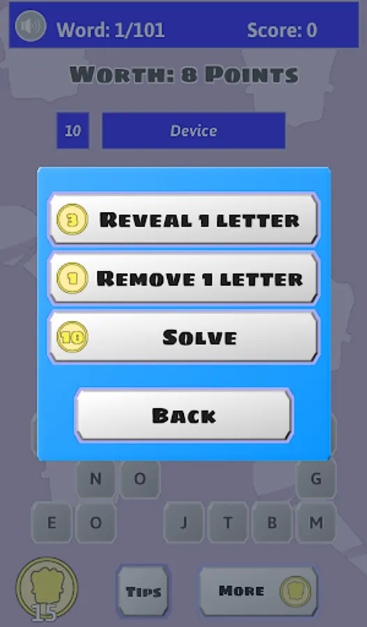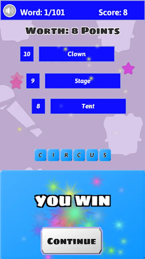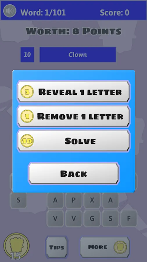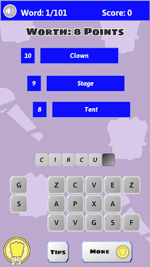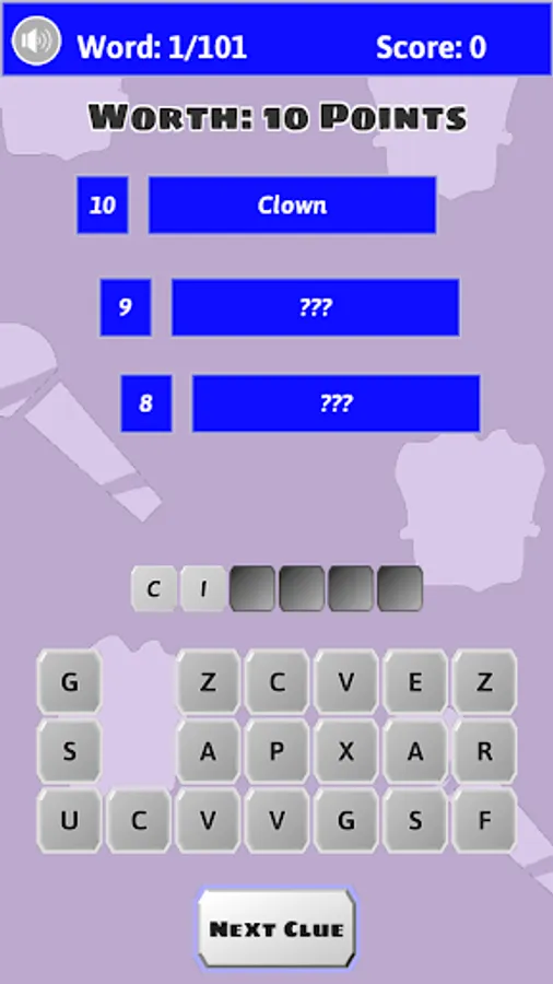 In the three clues game you need to discover the secret word using up to 3 clues as a hint. The less clues you reveal to discover the word, the more points you will score.