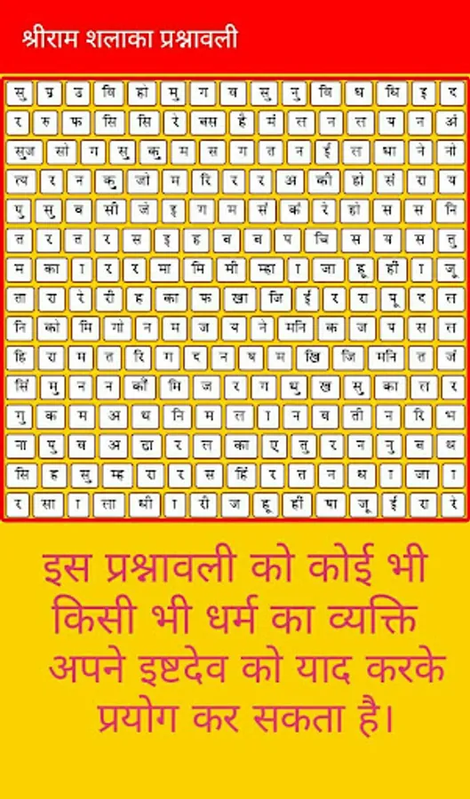 shree ram shalaka or ram shalaka or ramshalaka prashnavali hindi is a devotional app which work based on belief system.