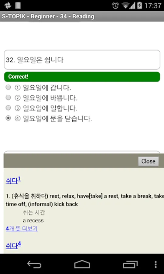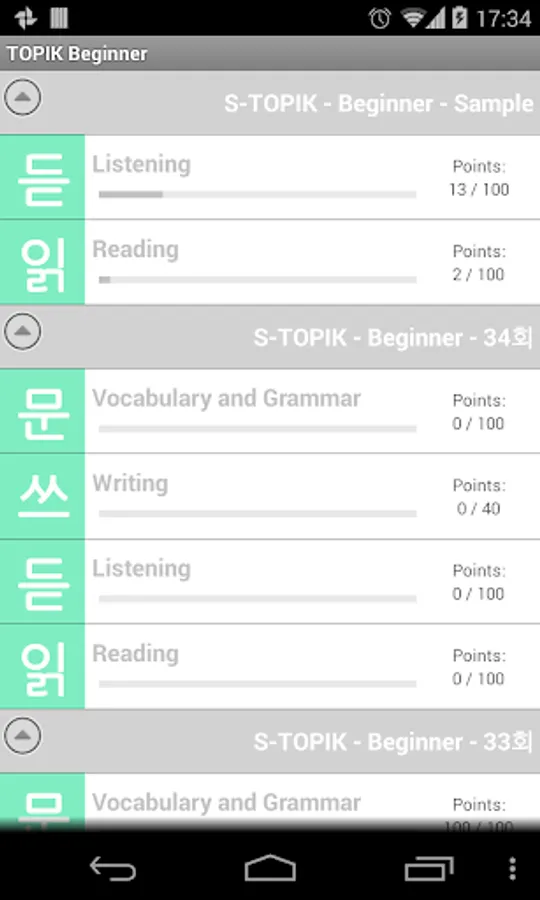 - Beginner Level: 18 previous tests within the old format (17회 to 34회).