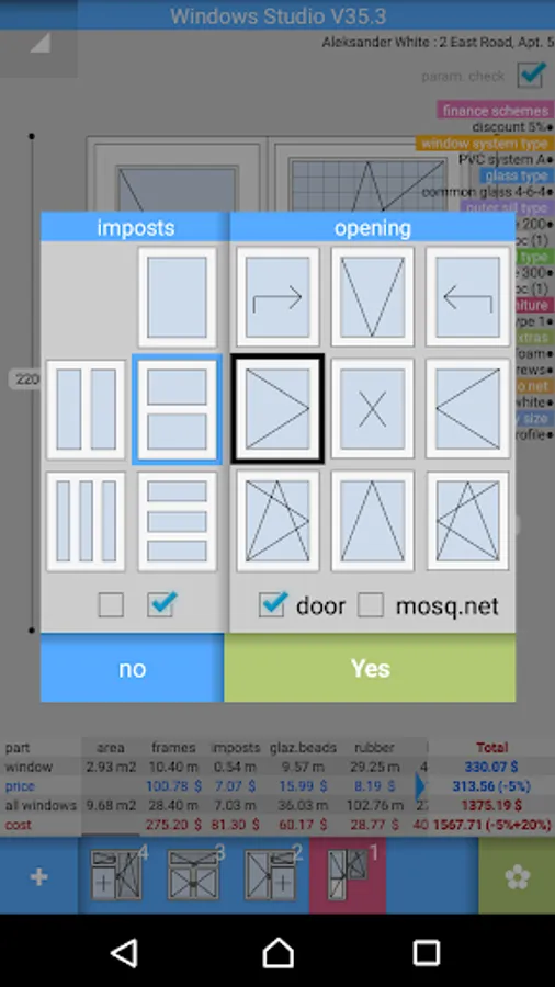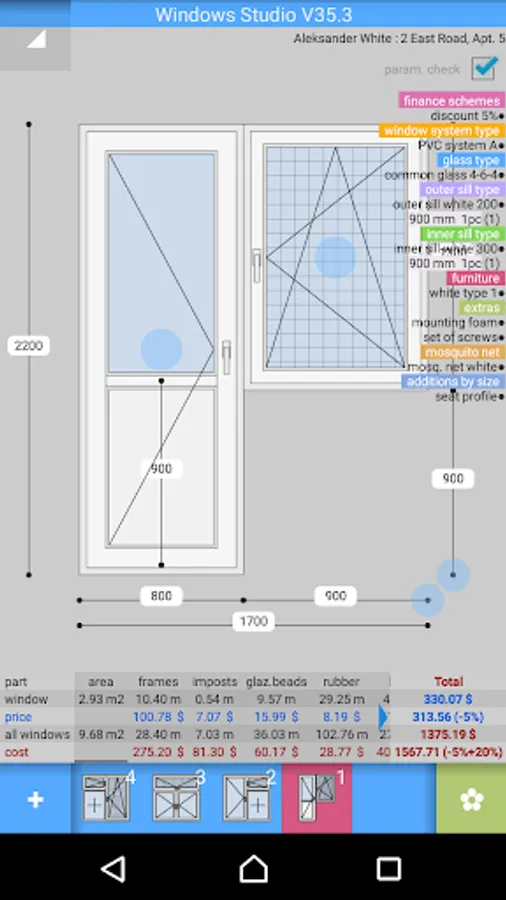 The purpose of the project - the calculation of the cost of the order "on the fly" directly on the site in the presence of the customer. The program keeps a database of customers, facilities, and all the windows have ever ordered. Also, the program includes a powerful built-in editor of prices. Add to calculate any of the windows, window sills, glasses, films, mosquito nets, works, and other things. When properly filling out application of prices will be a powerful tool in your hands!