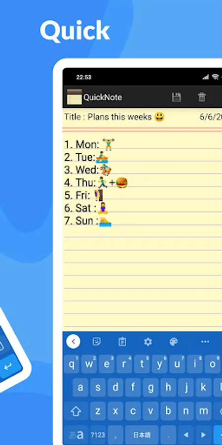 This helps you to take notes, shopping list, memo, email, todo list and message quickly and easily making it practical and fast without having to go through very laborious menus. This note is also a good helper to manage your schedules and notes.