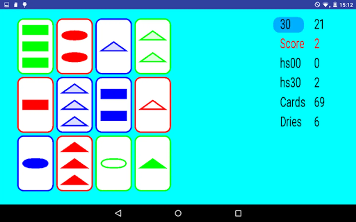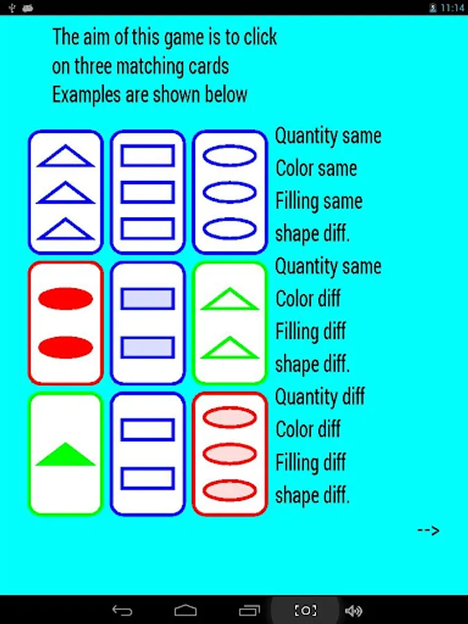 The object is to collect 27 sets in the game they are cald dries(dutch), There are two modes of play. First mode is with no time limit and second mode is with a timelimit of 30 seconds per pick.