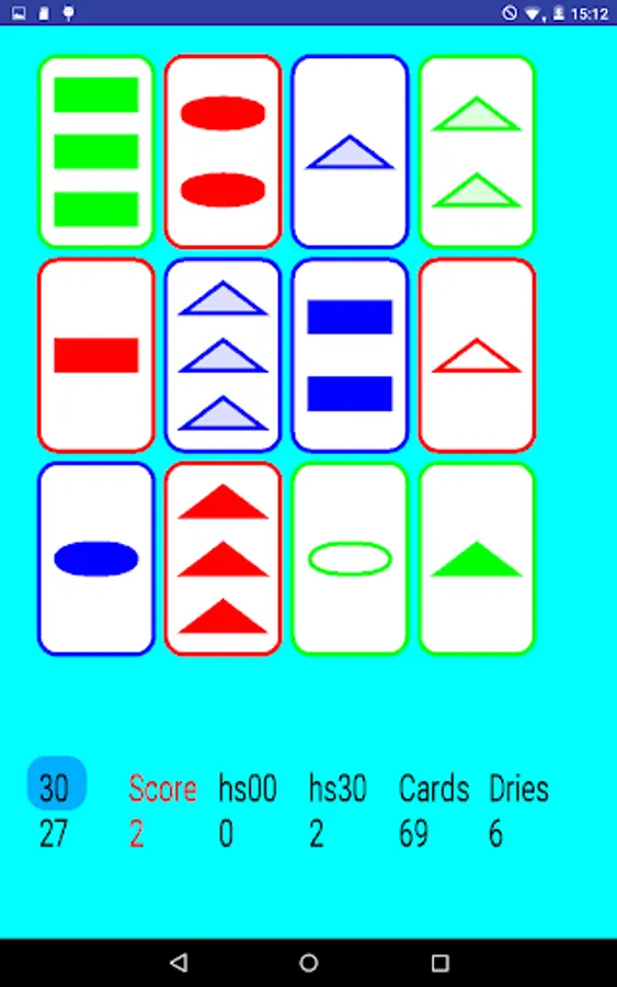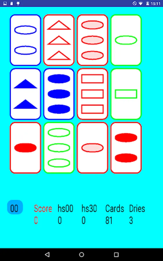 To make a set of three cards there are 4 characteristics: Shape, quantity, filling and color. They have to be all the same or all different to make a set. In the beginning of the game there are 81 cards. The maximum score is therefore 27.