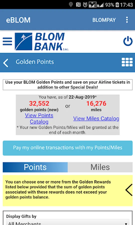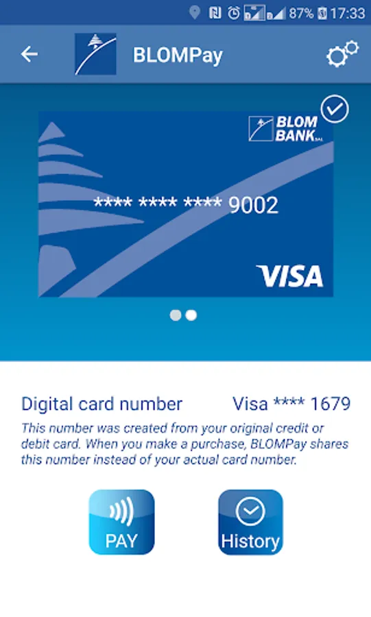 • Enable one or more of your VISA debit/credit cards via eBLOM App for contactless payments at POS terminals and enjoy the convenience of BLOMPay while making your purchases just by tapping your smartphone at millions of POS terminals around the world
