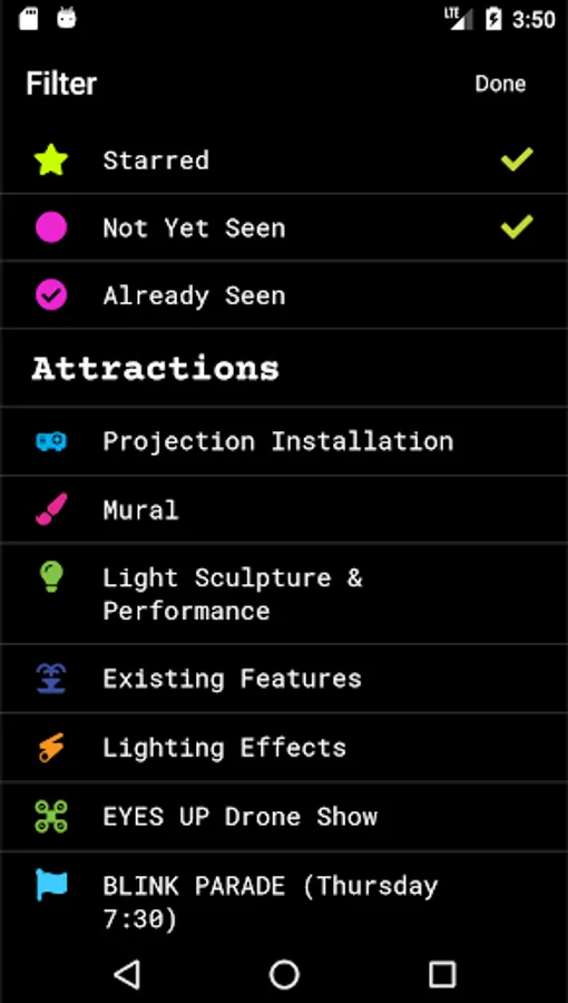 • Filter the map by type of attraction, whether you have seen it yet, and more!