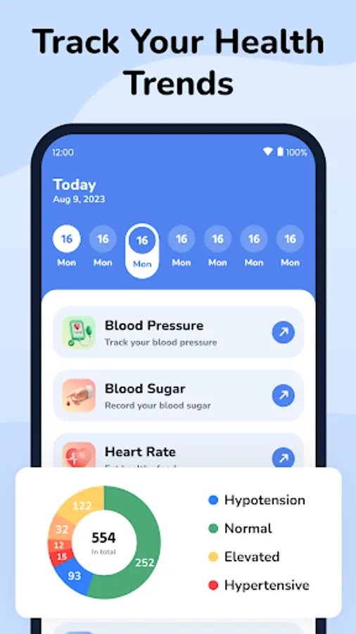Monitor and analyze your blood pressure with Blood Pressure App - BP Monitor for a better understanding of your body.
