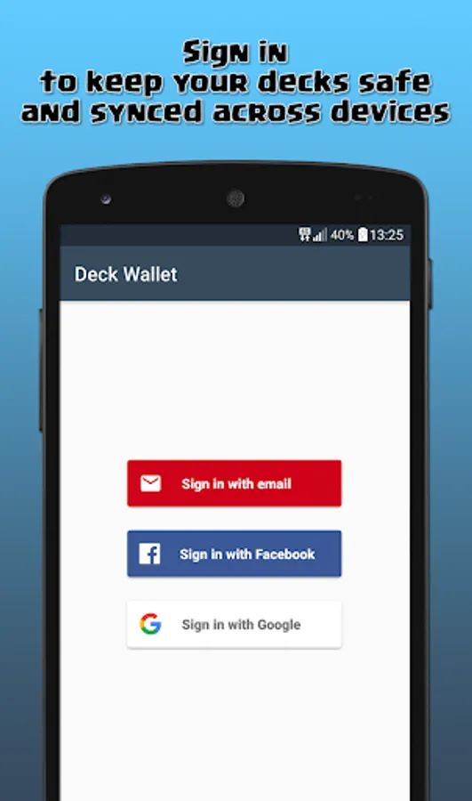 Create your user account and sign in to keep your decks safe and sync them across multiple devices.