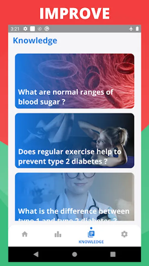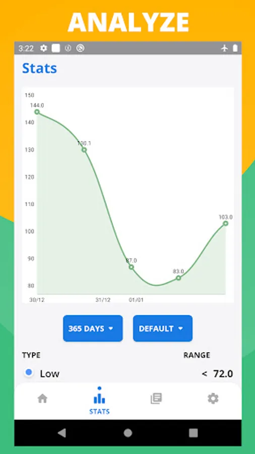 • Graphical information: Easily compare and analyze your blood glucose by looking at all the statistics.
