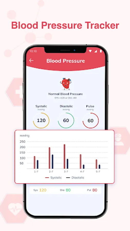 - Track your blood pressure levels effortlessly. The blood pressure tracker app helps you to record your systolic and diastolic readings regularly. Visualize your progress over time with easy-to-read charts and graphs.