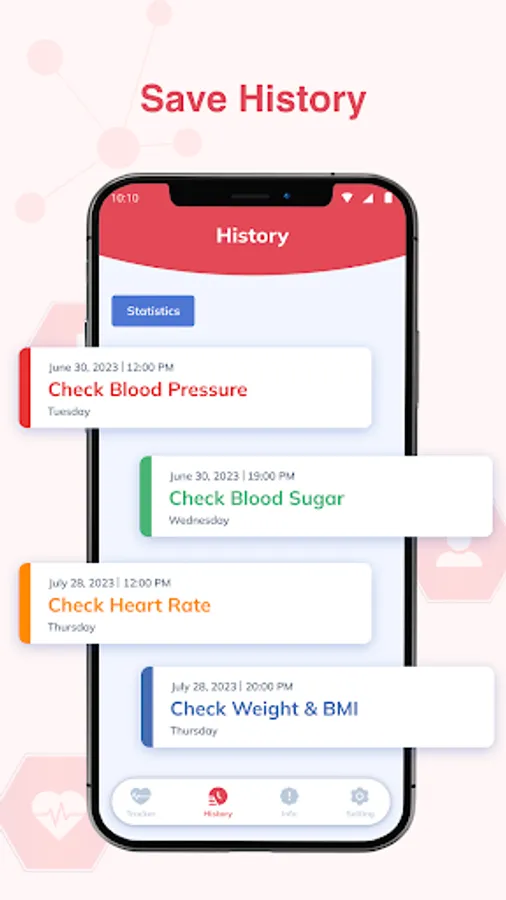 - Never lose sight of your health journey. The heart analyzer app maintains a comprehensive history log of all your recorded data/ This historical perspective can help identify patterns and track improvements in your health metrics.