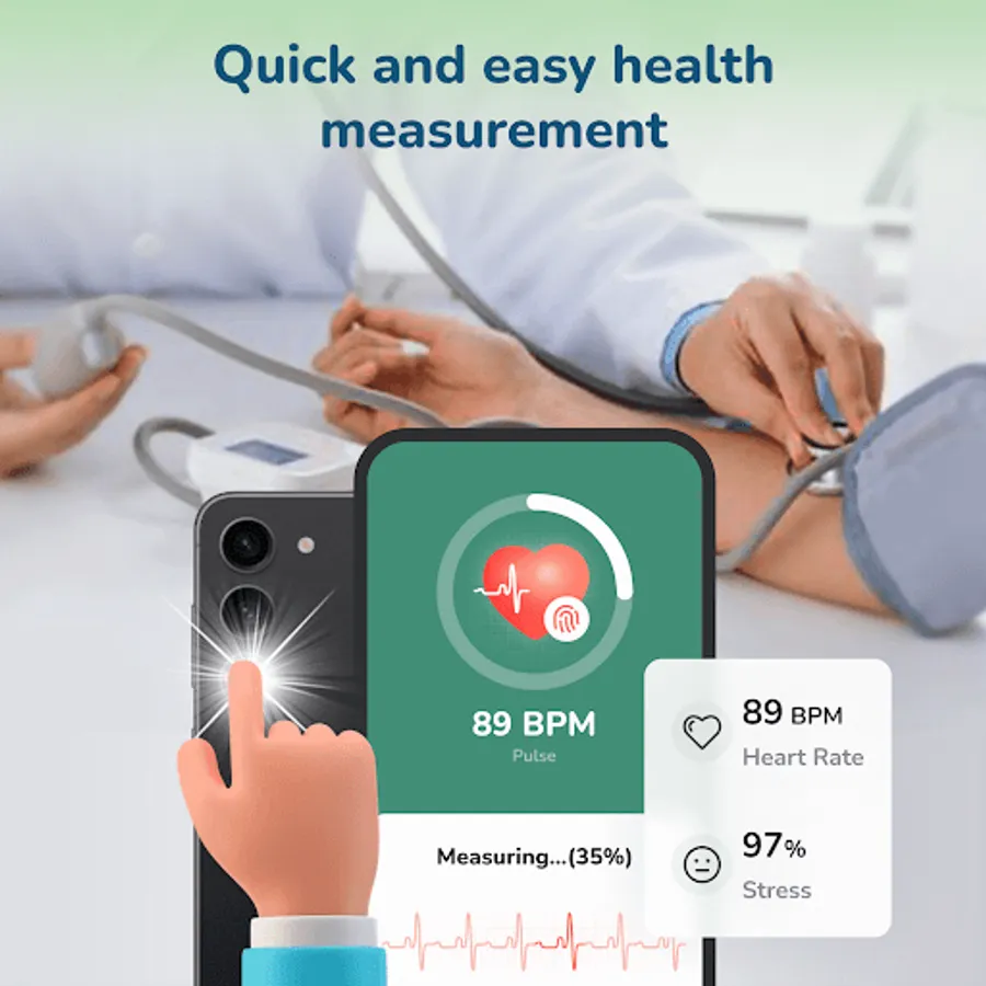 Detect your heart rate by using your smartphone camera with Photoplethysmography (PPG). Health tracker can caculate HRV (Heart Rate Variability) Personalized results for assessing stress levels based on accurate pulse signals.