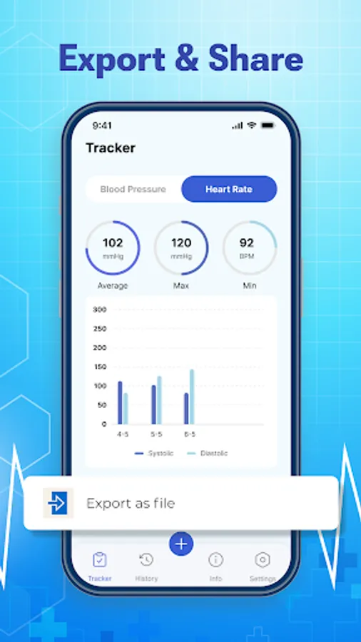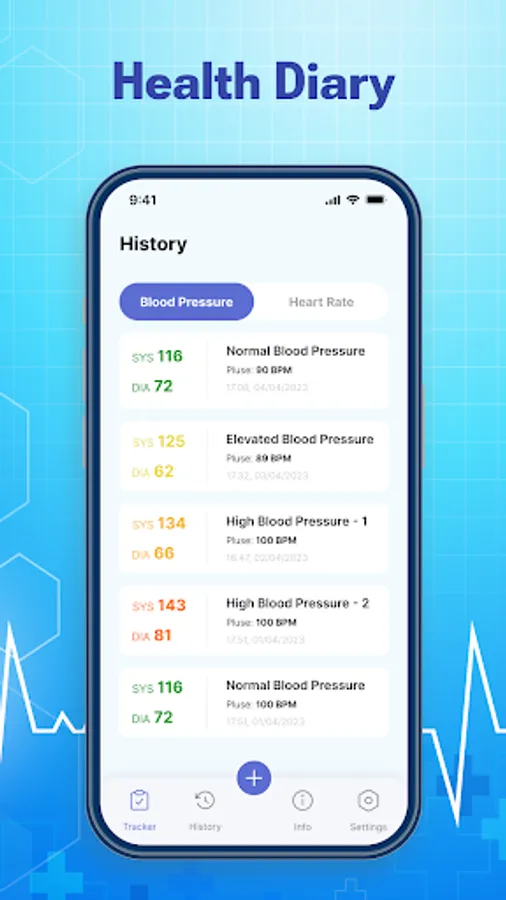 Blood Pressure: Health App is a tool that could help you maintain a healthy heart by analyzing and visualizing your add-in blood pressure and heart-rate data.