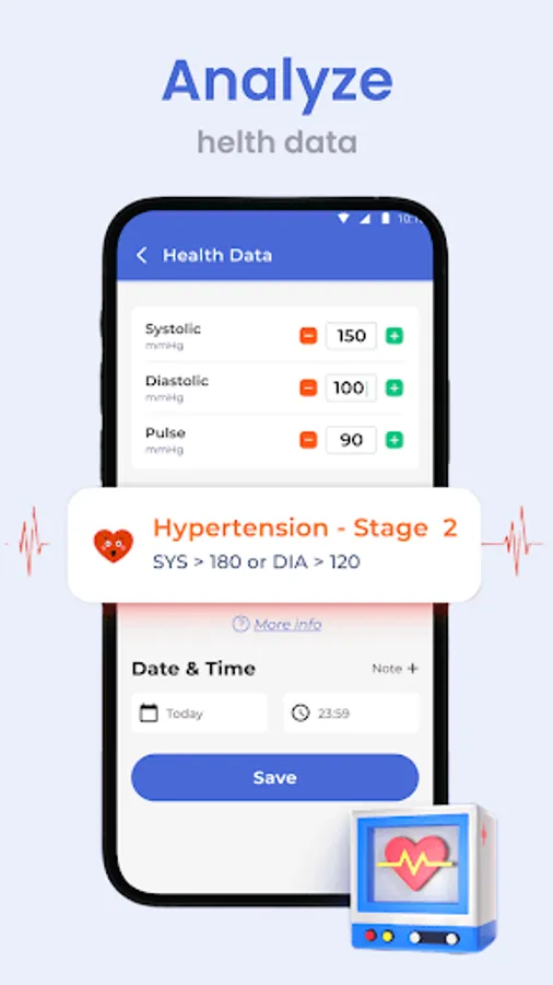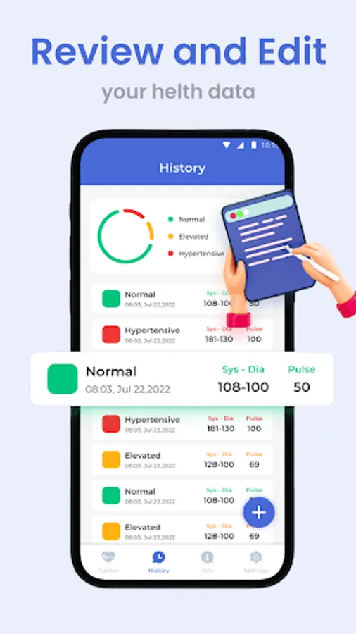 The objective of this blood pressure identifier App is to help individuals start living healthier lifestyles and take charge of their health. Continue to monitor your blood pressure; a wonderful method to do this is to keep a daily blood pressure journal.