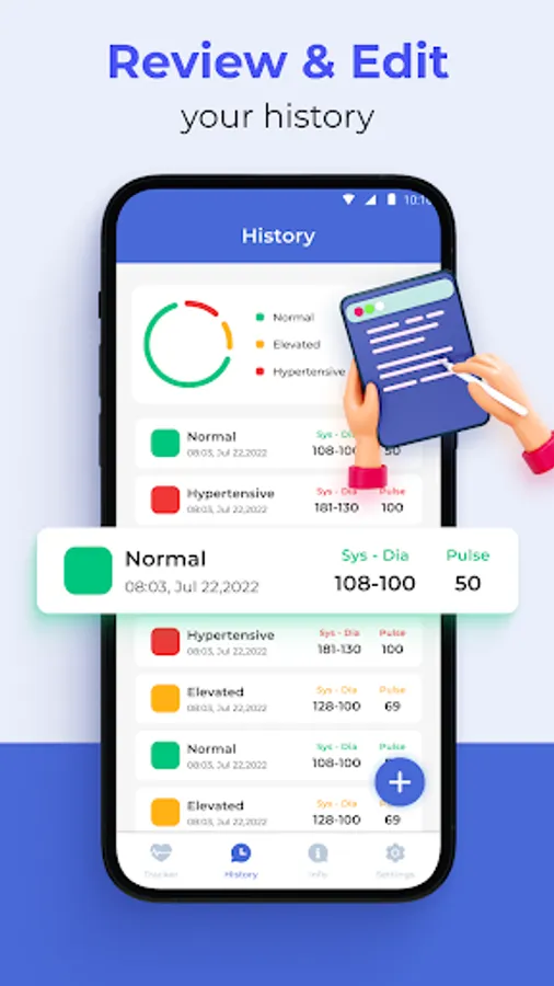 ⚠ The blood pressure tracker application can only be used in medicine as a support device for writing down indicators and is incapable of measuring blood pressure.