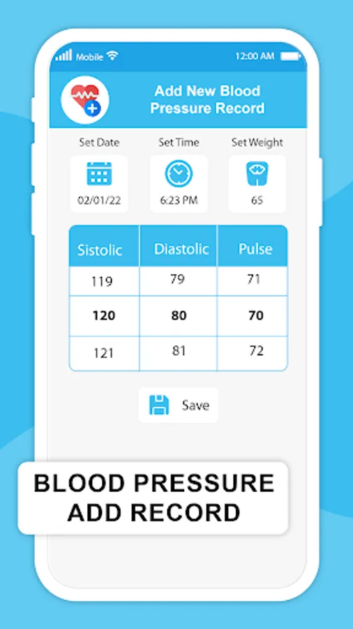 For every new reading from the BP apparatus, you will add a new record through the BP Diary app. You can add your systolic, diastolic, and pulse rate reading by clicking on the save button. You can see this record in the Blood Pressure History Icon.