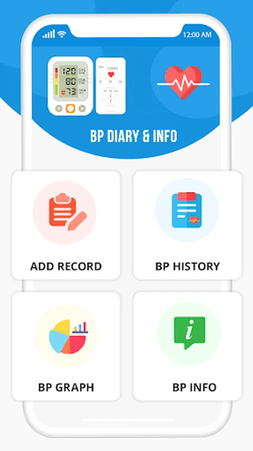 BP Diary application is designed considering how it perfectly assists the users. Every feature of application has icon and meaningful text so app is very easy to use. Following are main features of application.