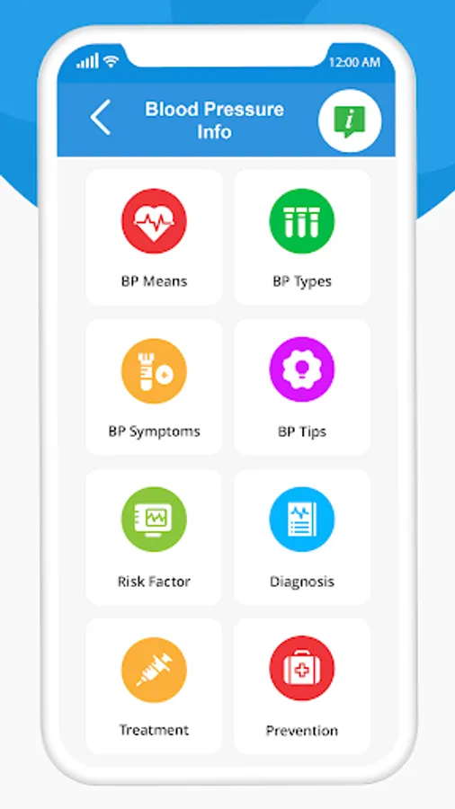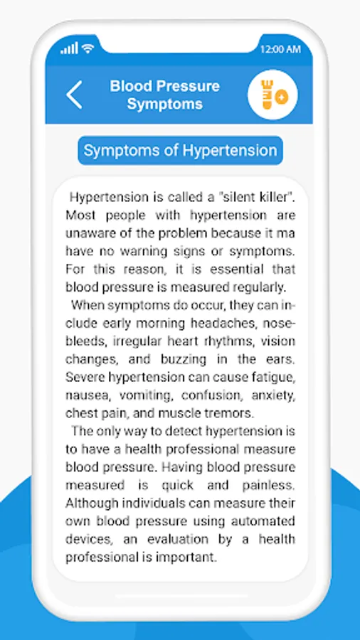 BP Diary also have precise and to-the-point information about blood pressure. Following features are available for this information