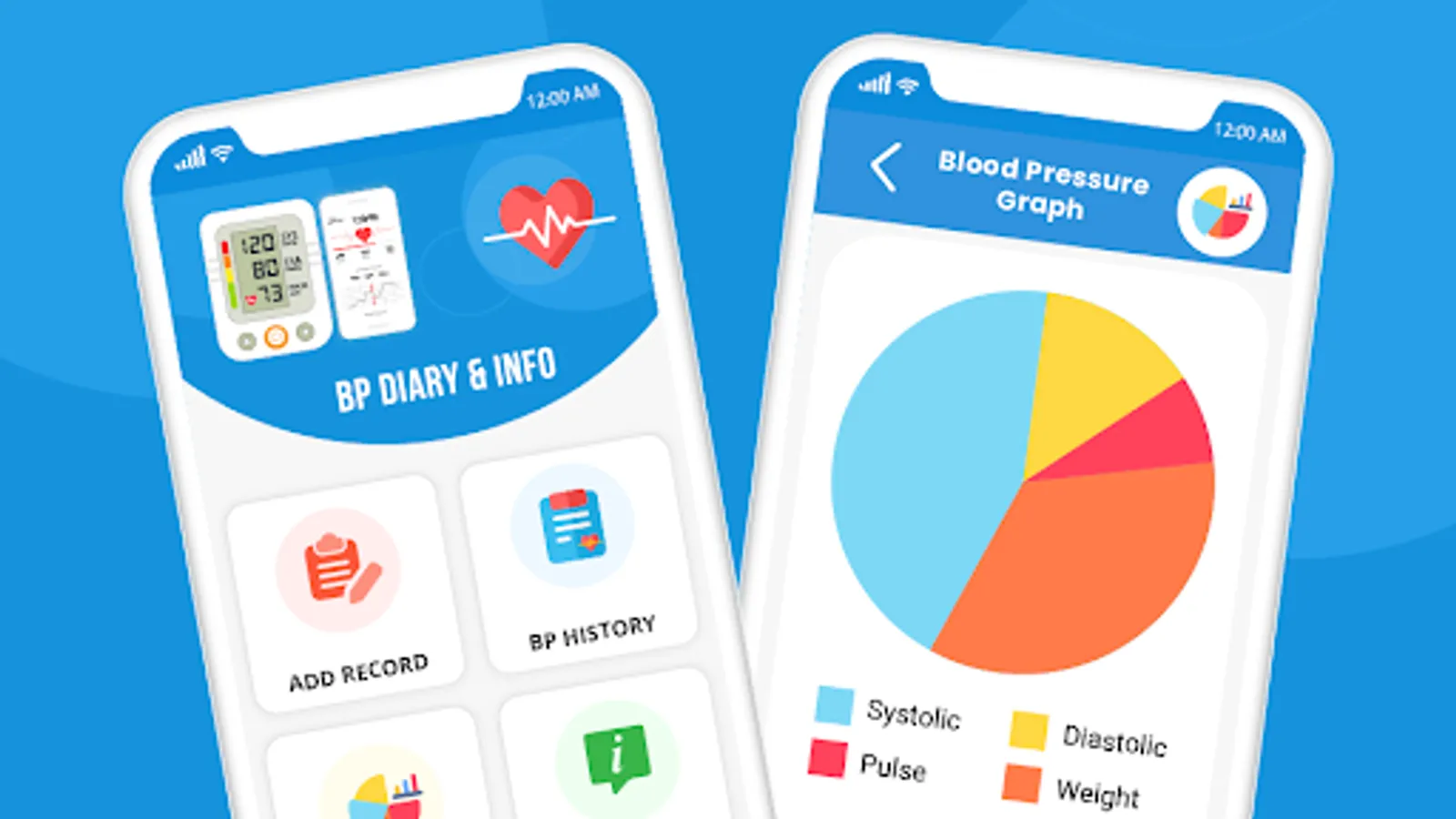 Blood Pressure recorder and bp diary is simple and nicely designed app to keep record of all bp units systolic diastolic, pulse rate on hourly, daily weekly basic to manage all history of bp reading. It is very important for blood pressure patient to keep blood pressure records and keep blood pressure in control, otherwise it can cause of different diseases like heart attacks, aneurysm, or an abnormal bulge kidney diseases and failure, stroke, amputation hypertensive retinopathies in the eye, which can lead to blindness.