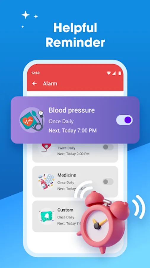 - Set an alarm to receive notifications when it is time to take your medication, check your blood pressure, heart rate or engage in physical activity.