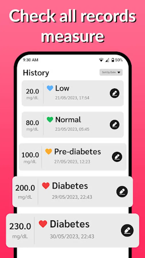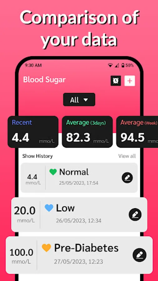 The record of blood sugar daily will help you to understand what can influence your blood sugar levels and how to maintain healthy levels. In the blood glucose tracker, you can check the history report of your blood sugar data. You can use a blood sugar diabetes tracker or personal blood sugar diary.