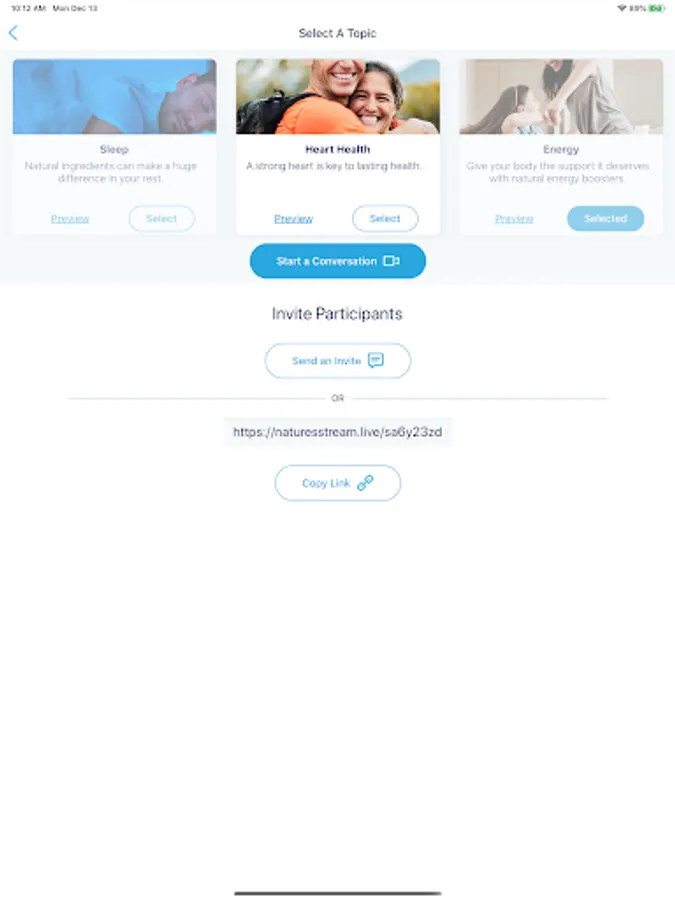With Nature’s Stream, you can invite others to video calls, chat with customers, recommend products, view customer cart contents in real time and other e-commerce functions! Your customers can interact with you without downloading an app and they can add products directly to their cart from the livestream!