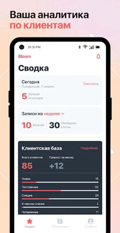 Bloom Master is a free application that replaces an assistant for convenient customer management and attracting new ones.