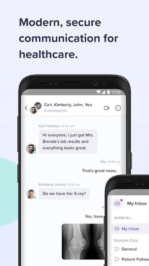 ✔︎ Stay in control of your team's texts, images, and messages. Keep all PHI contained within the app instead of stored on your staff's phones. Remove a staff member with a single button.
