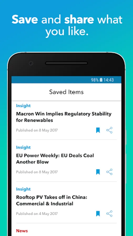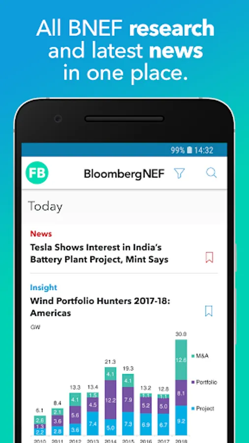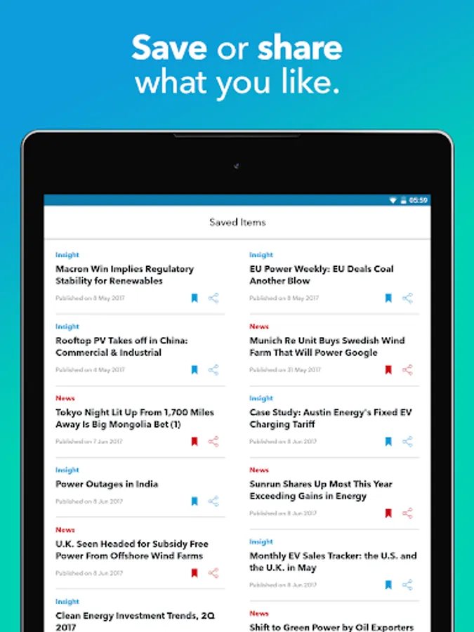 • Save what you like to revisit later on bnef.com, or even offline on the app.