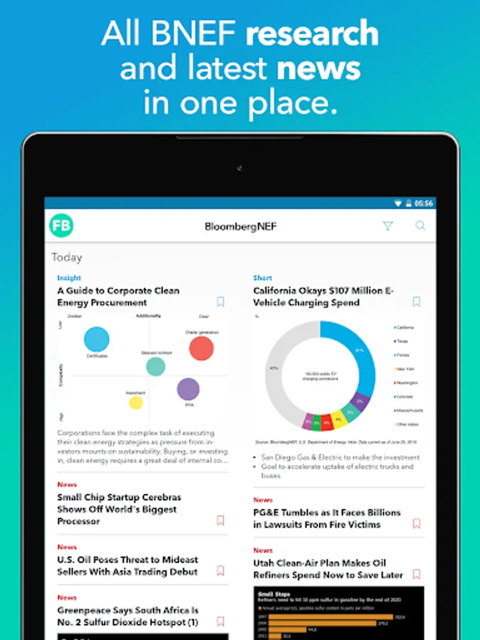 This is the companion app to the BloombergNEF service and requires an active subscription to log-in. BloombergNEF helps clients keep informed, simplify their research and sharpen their strategy with independent and comprehensive coverage on clean energy, advanced transport, digital industry, innovative materials and commodities.