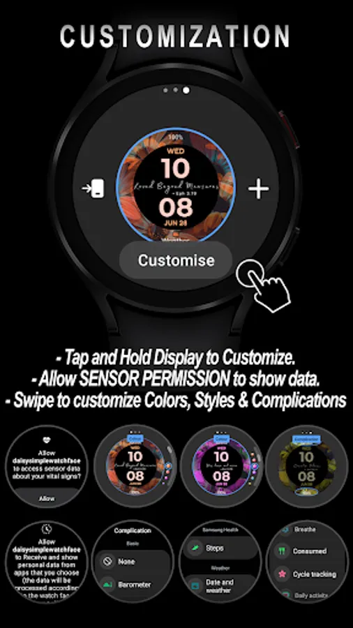 1️⃣ Watchfaces automatically install on watch. (There will be a download icon on screen while installing)