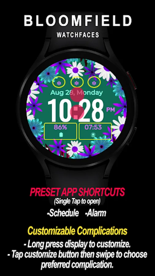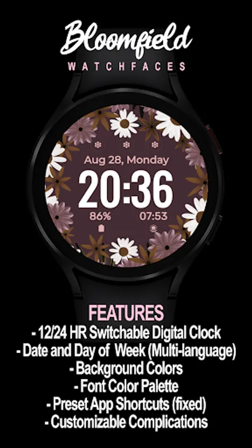 ⚠️⚠️⚠️ Before you rate us unfairly, reach us out at bloomfieldwatchfaces@gmail.com and we will send you sceeenshots and instructions how to install the watchface. We are more than willing to help you step by step.