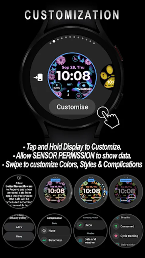 ⚠️⚠️⚠️ Before you rate us unfairly, reach us out at bloomfieldwatchfaces@gmail.com and we will send you sceeenshots and instructions how to install the watchface. We are more than willing to help you step by step.