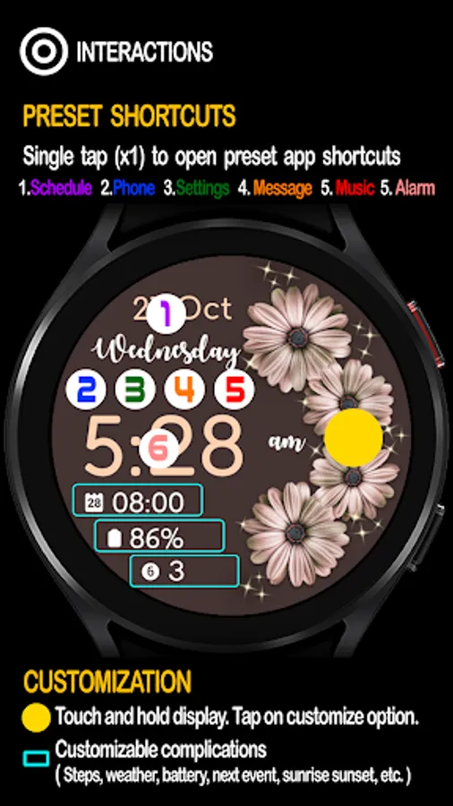 ***Some complications data may not appear immediately on display. Display depends on the installed apps on your watch.