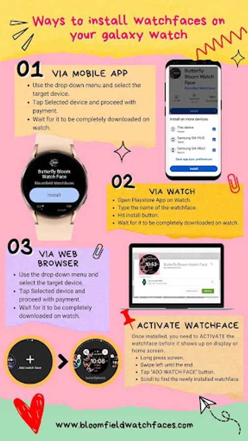 ⚠️⚠️⚠️ Before you rate us unfairly, reach us out at bloomfieldwatchfaces@gmail.com and we will send you sceeenshots and instructions how to install the watchface. We are more than willing to help you step by step.