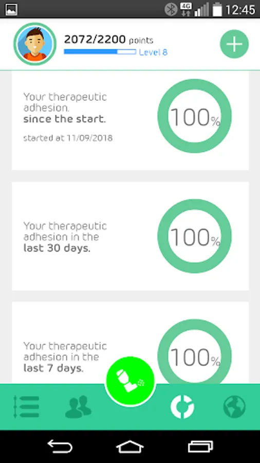 - It guarantees the accumulation of points for compliance with the medication, filling in the daily and weekly questionnaires, and evaluating other users;